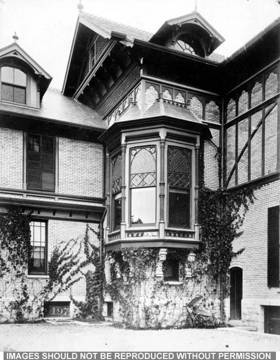 Blair lodge [Larned house], Lake Forest (30 miles north of Chicago), overlooking Lake Michigan , by W L B Jenney, demolished c 1913. Built by the railroad baron John Insley Blair for his granddaughter Emma, daughter of Charles Scribner (publisher) and wife of W C Larned (art critic and novelist). Illustrated in the Architectural Reviewer, I (1897), p 7, reproduced in Turak, p 192. Ref Paddock & Miller, Lake Forest; Turak, William Le Baron Jenney, pp 189-90.
